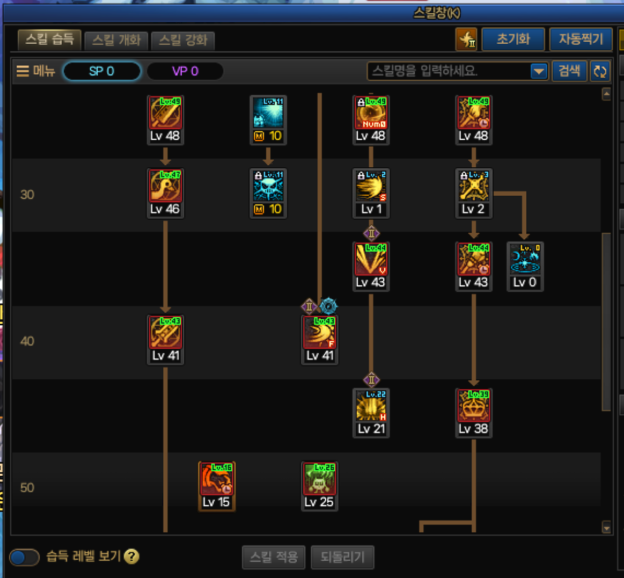 스킬트리는 사실상 고정입니다.