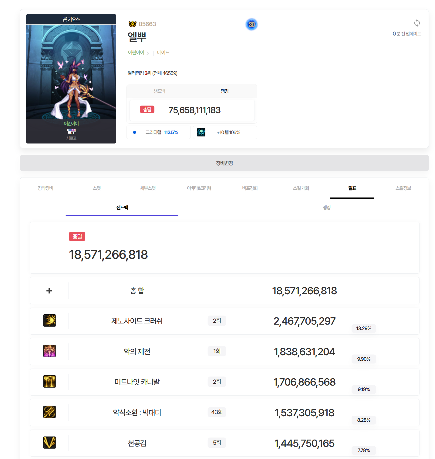쿨감을 전혀 챙기지 않아도되기에 그 기반으로 인한 엄청난 폭딜 + 쿨감에 영향을 받지않는 깡딜의 소환수의 시너지입니다.