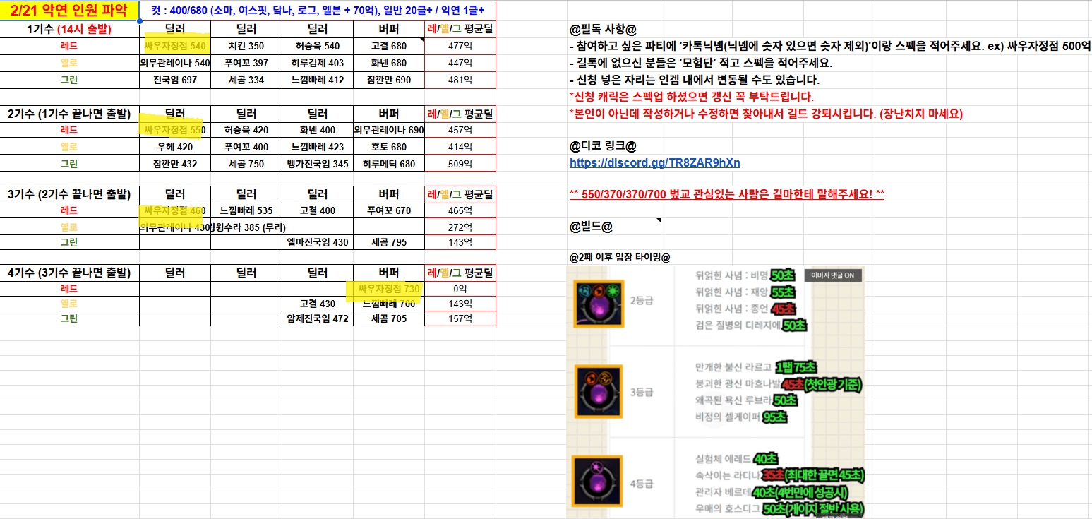 - 븜다닥 & 븜다다닥 '14일' 미접속 인원은 길드 자리를 위해 강퇴 조치