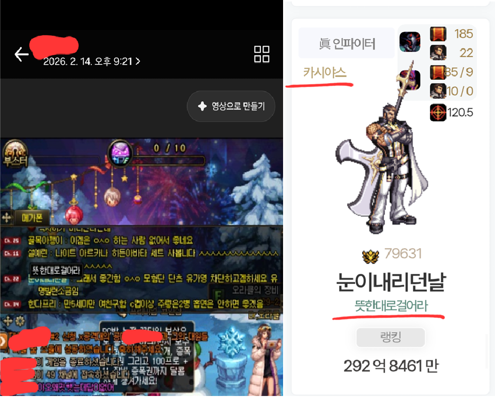 이건 02월 14일 오후9시경 연휴기간에도 부캐로 날조하는모습