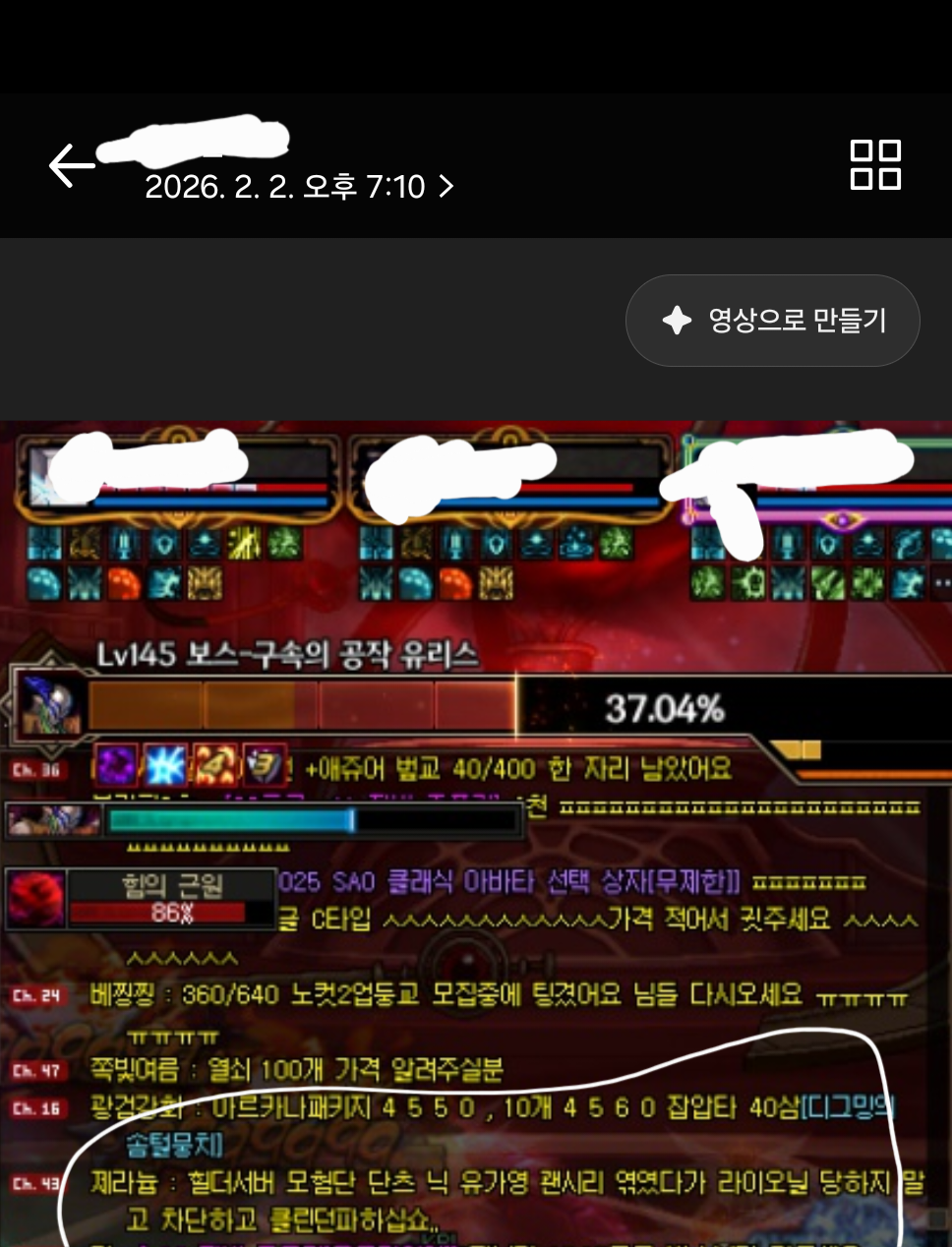 나보고 채팅짤라올렸다는데 밀려서 없는데 너라도 올려라. 하니까