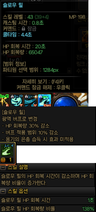 슬로우 힐, 신성한 빛과는 다르게 쿨마다 사용하기보다는 계속 들고 있다가 확실한 후케어기로 사용하는 것이 좋습니다.