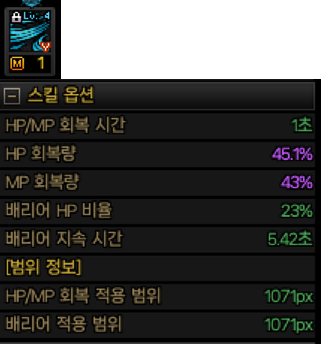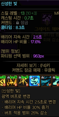 스킬 개화 적용을 통해 준수한 광역 배리어 스킬로 변신한 신성한 빛, 힐 윈드를 통해