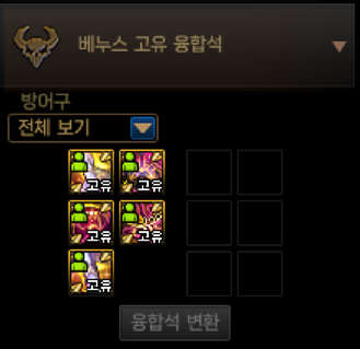 베누스 고유 융합석은 배신, 기품, 욕망 가리지 말고 아무거나 착용해주시면 됩니다.