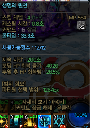타 버퍼들과 다르게 각 파티원을 지정해 최대 12회 부활가능한 생명의 원천을 미리 걸어줄 수 있으며