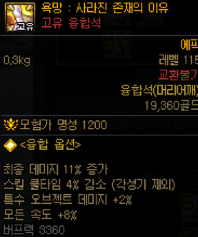 베누스 융합석은 피해감소가 달려있는 기품과 모든속도가 달려있는 욕망둘중에 취향에 따라 고르시면 되지만