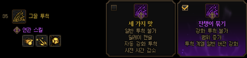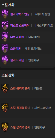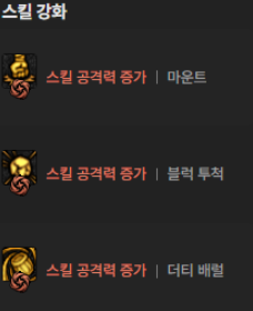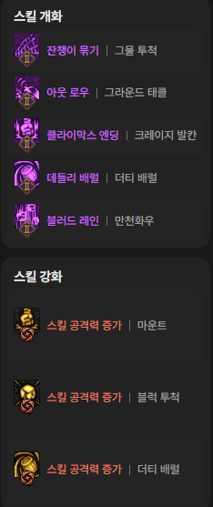 스킬강화 - 스킬강화는 본인의 세팅과 취향에 따라 천차만별로 나뉘기 때문에