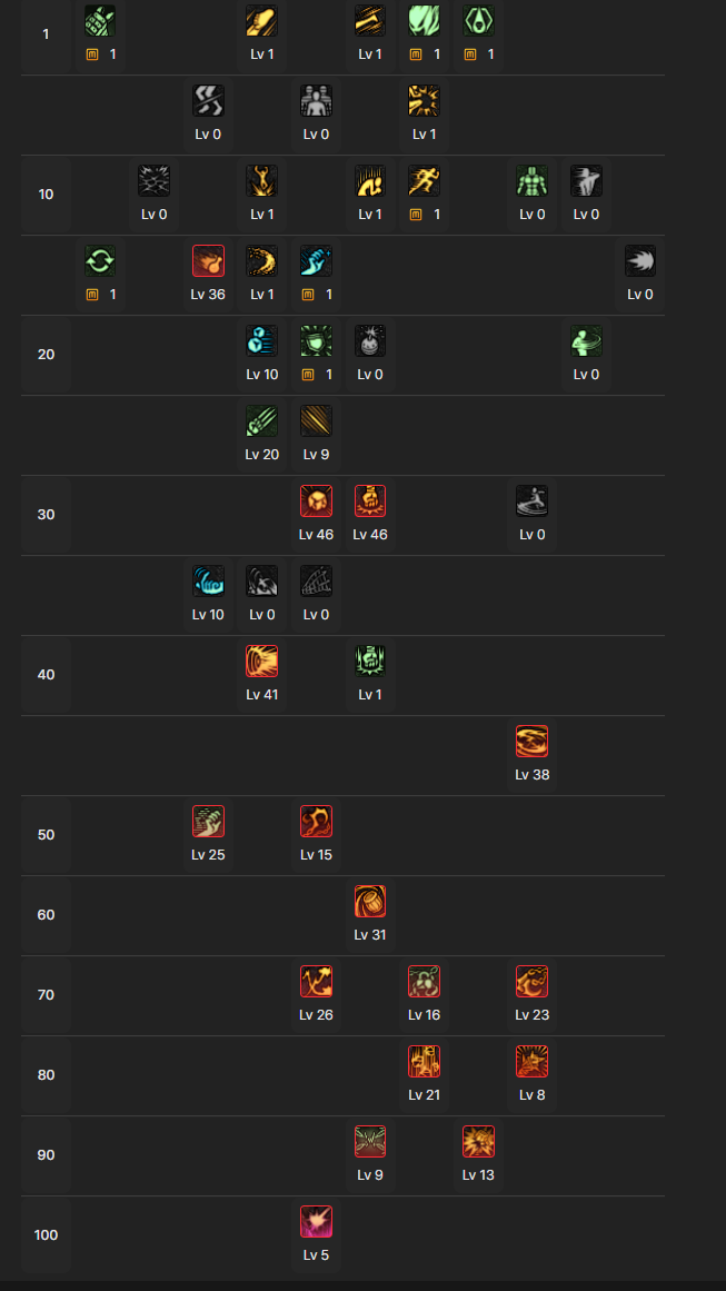 두번째로 기본기세팅은 모든 투척물과 일발화약성,그라운드태클, 같이 쿨타임이 짧고 스포대비 효율이 좋은 스킬들에 투자하여