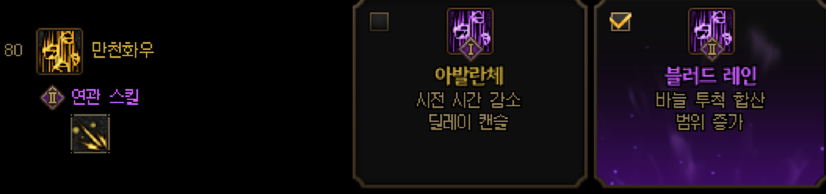 딜사이클의 고점을 확실하게 높이는 세팅으로 쉬지않고 스킬을 돌려야하기 때문에 난이도가 굉장히 높기에 실전에서 사용난이도가 높습니다.