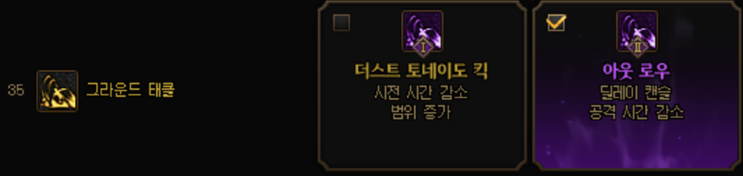 쿨타임이 똑같기때문에 사이클을 굴릴때 태클 -> 더티배럴 을 같이 계속 사용해주시면 훨씬 사용에 편리합니다.