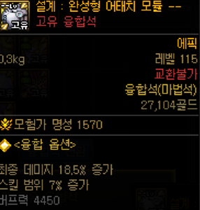 여기서 중요한점은 설계 고유 융합석은 렙제로 되어있는데 주력레벨인 30LV이 없기때문에 그물과 태클이 있는 35LV 이나 주력으로 쓰는 더티배럴60LV 등
