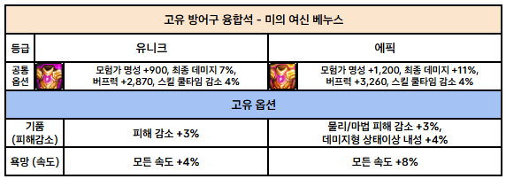 베누스 고유 융합석 : 소환사의 경우 욕망, 기품 중 착용하면 됩니다.