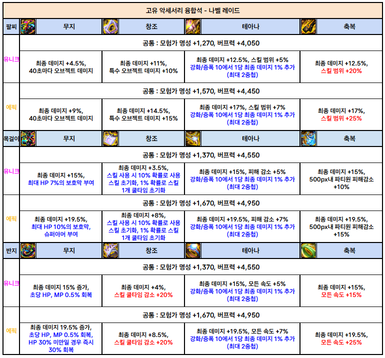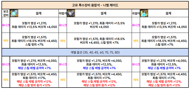 나벨 고유 융합석 : 위의 표를 보고 본인의 아이템 세팅에 맞게 파밍하시면 됩니다.