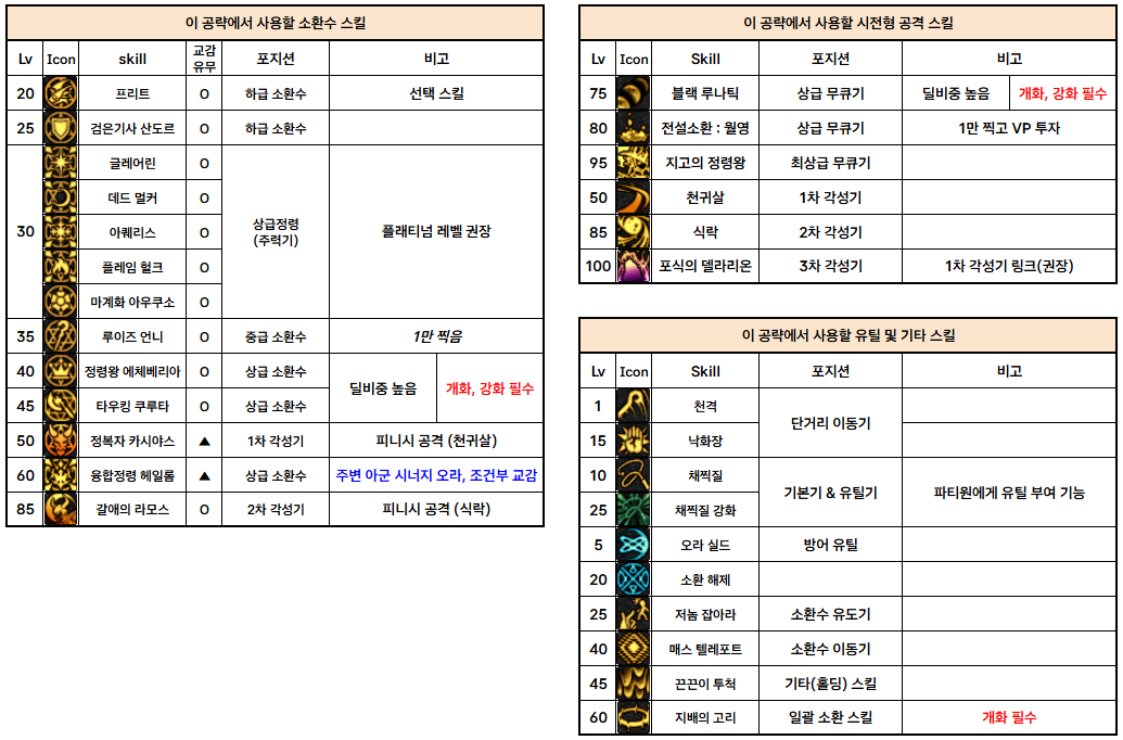 즉, 이 글은 '소환사를 본캐가 아닌 1군 딜러나 부캐릭으로 키우시는' 분들을 위해 작성한 글입니다.