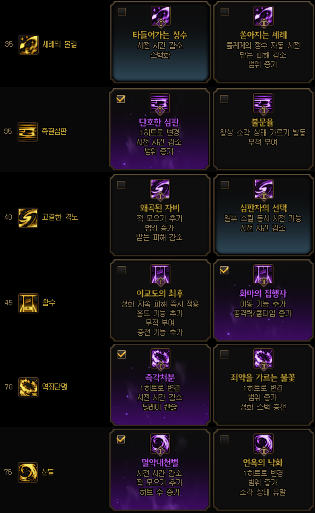 보통 최고 효율을 위해 상의 옵션 1개, 딜플티 2개 총 3개의 스킬을 [성화 : 배액마 = 1 : 2] 로 맞춥니다.