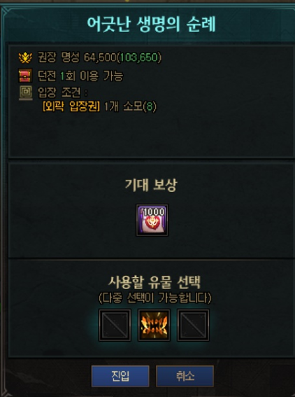 메인, 외곽 관문 입장권은 하루에 1장씩 지급됩니다.