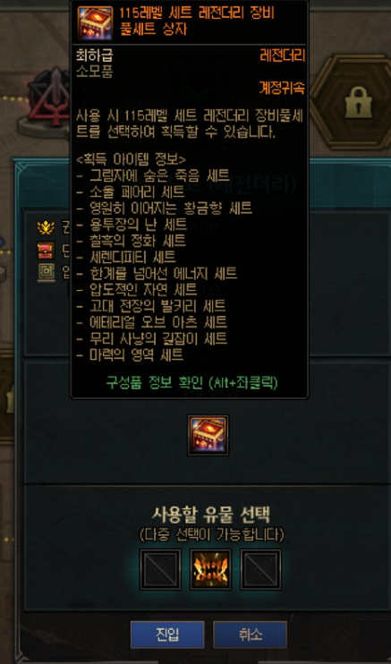 부캐릭 육성에 유용한 레전더리 풀세트 상자도 얻을 수 있습니다.