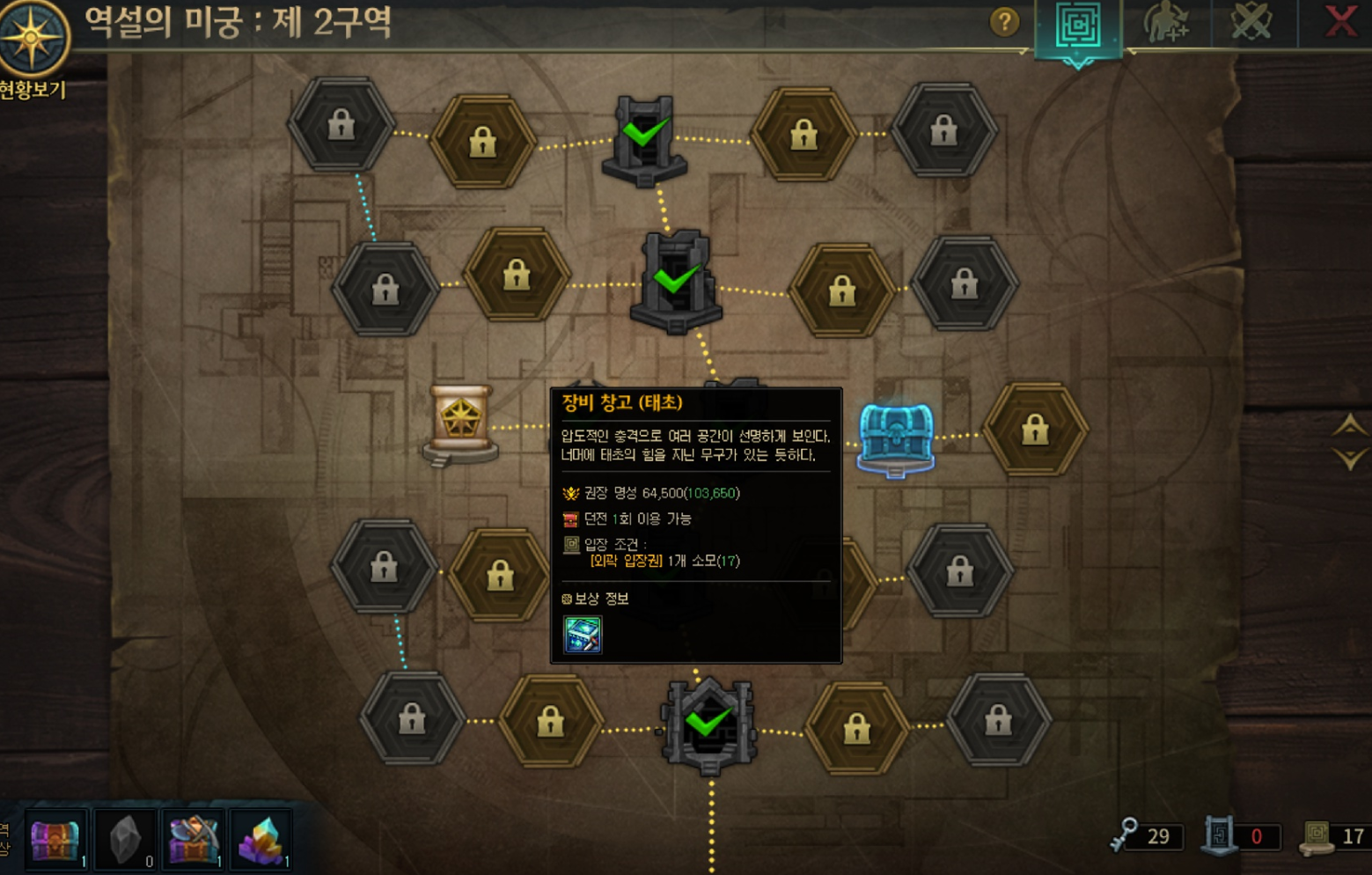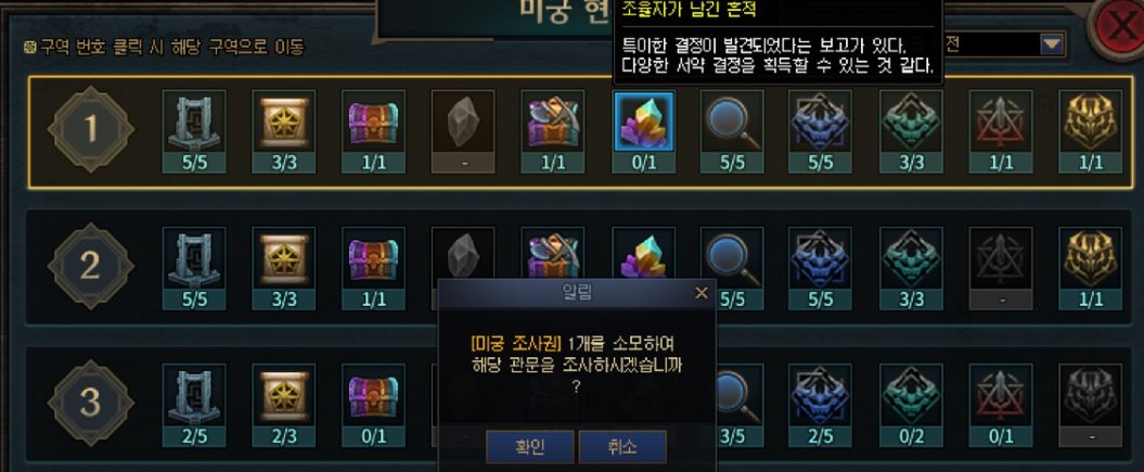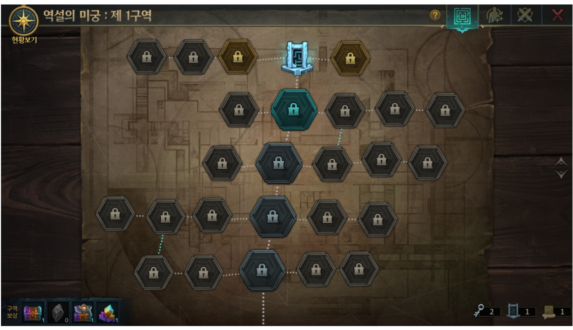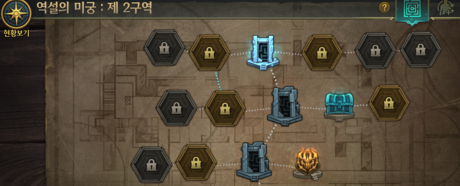 미궁 현황을 보고 어떤 보상이 남아 있는지, 그 보상이 꼭 갖고 싶은건지 확인하여 전략적으로 탐사하는게 중요합니다.