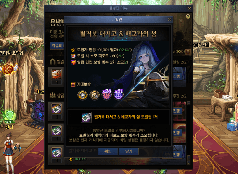용병단에서 던전 토벌(소탕)을 하실 수 있습니다.