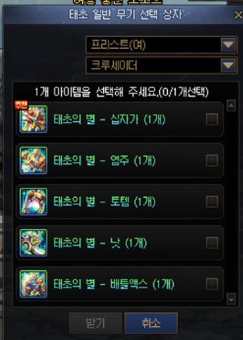 태초 무기, 태초 악세서리 선택 상자도 얻을 수 있습니다.