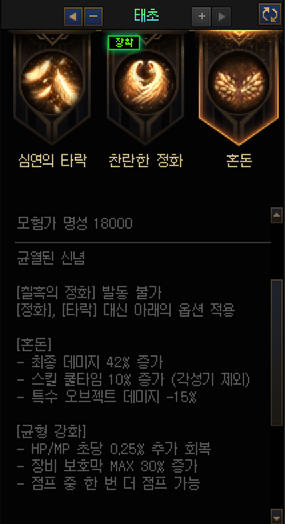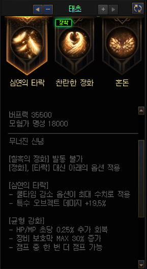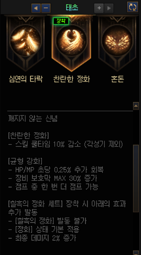 2옵션 = 정화를 기본으로, 타락 (쿨감상태) 발동 불가능