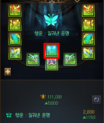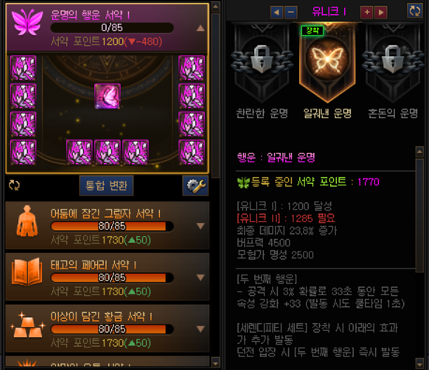 행운 서약 세트 옵션의 등급이 내려 가는 것 을 확인할 수 있습니다