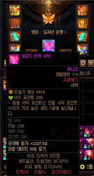 서약 결정 = 태초 악세 3개, 에픽등급 8개 줏어야함