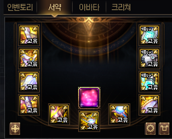 중앙의 슬롯 4칸은 '서약' 과 태초 등급의 '서약 결정'이 들어가는 자리에요