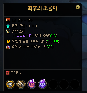 계시 소모 62 피로도 소모 8 입장 명성 13632