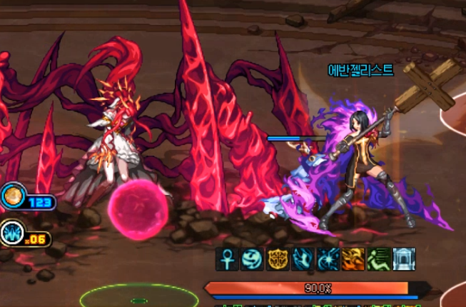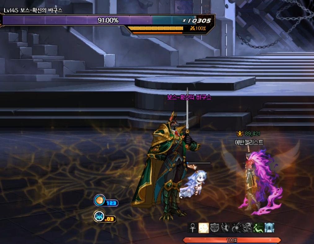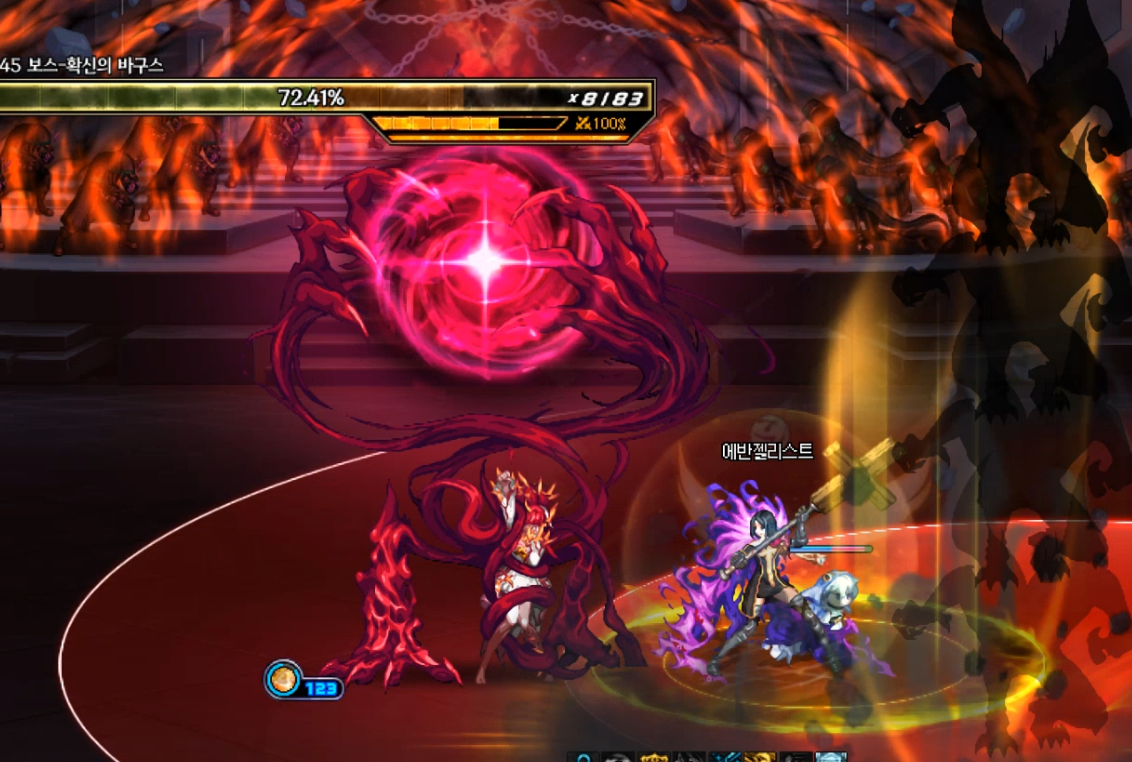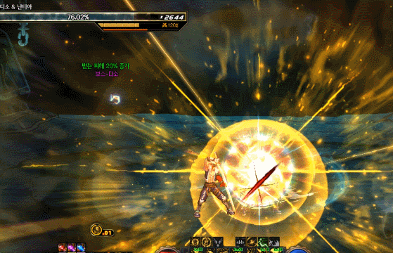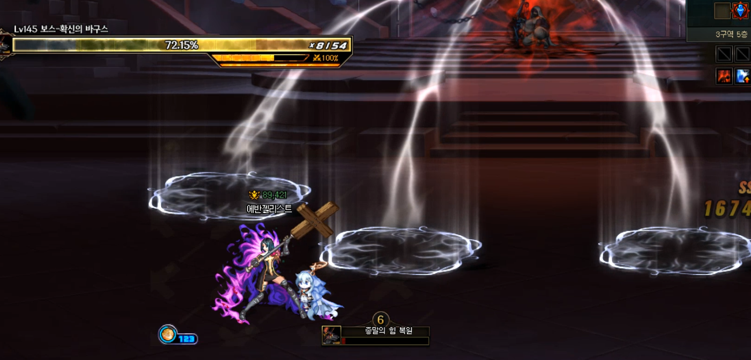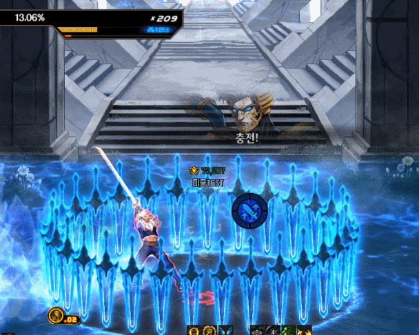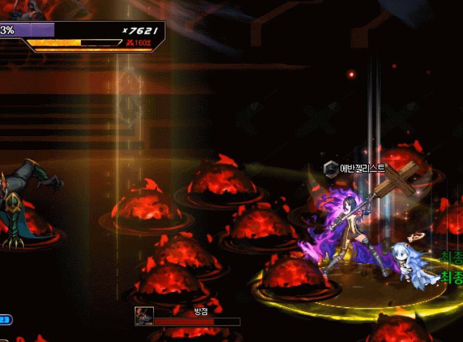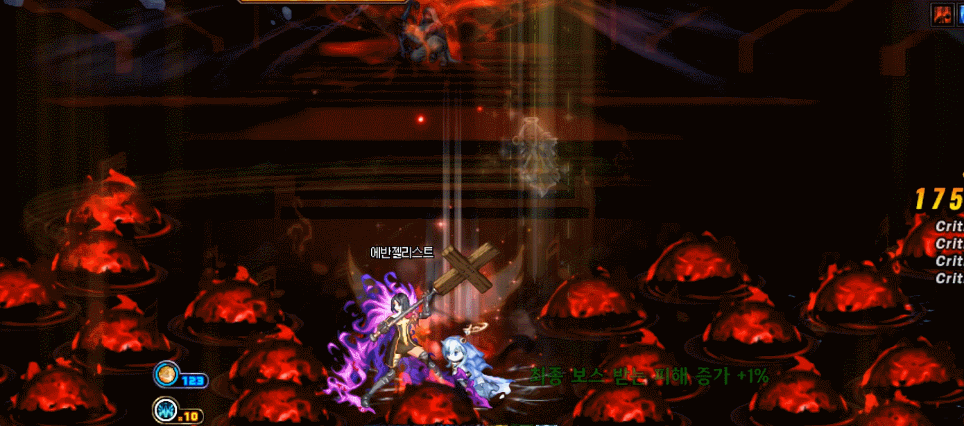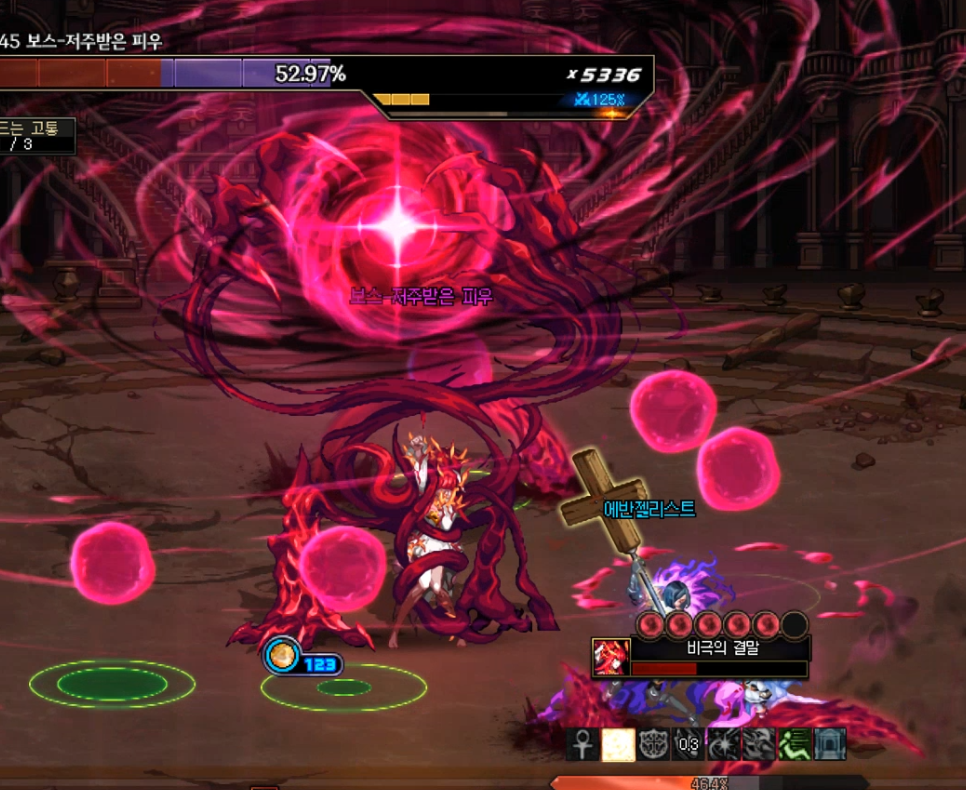방점이라는 게이지가 차오릅니다. 그동안 바닥의 구슬을 최대한 먹어서 피해량 증가를 모으다가