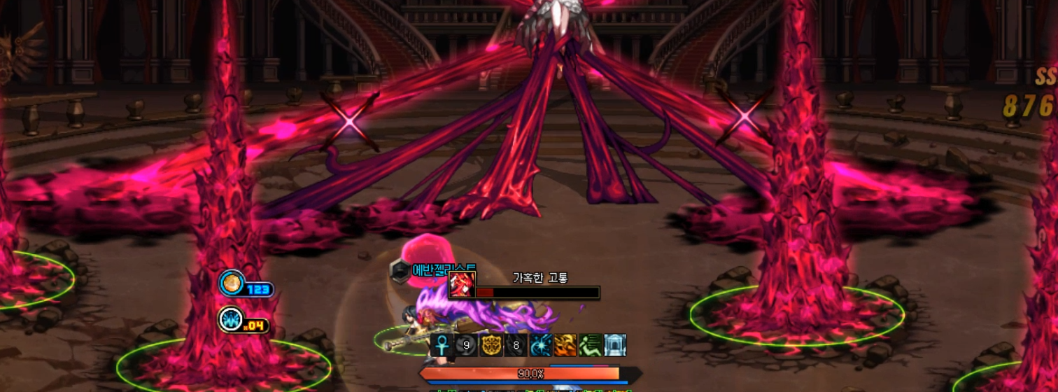 게이지 1칸이 회복됩니다. 이렇게 4칸의 게이지를 유지하며 공격을 피해서 딜을 넣는게 클리어 방법 입니다.