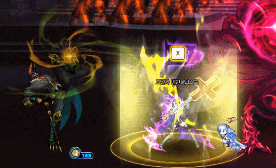 몸에 노란 보호막과 함께 빛나는 줄기가 생기는데 x표시안에 서있으면