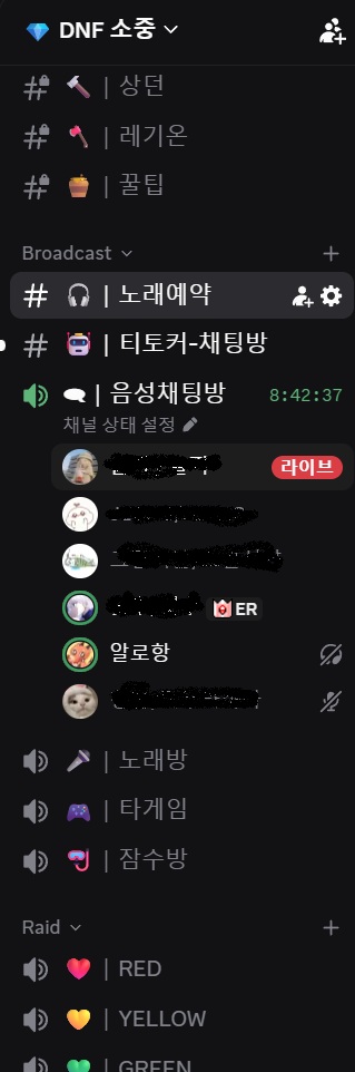 주 컨텐츠 : 상던 / 레기온 / 레이드 공대운영 채팅으로 드립치기 / 디코에서 노래부르기