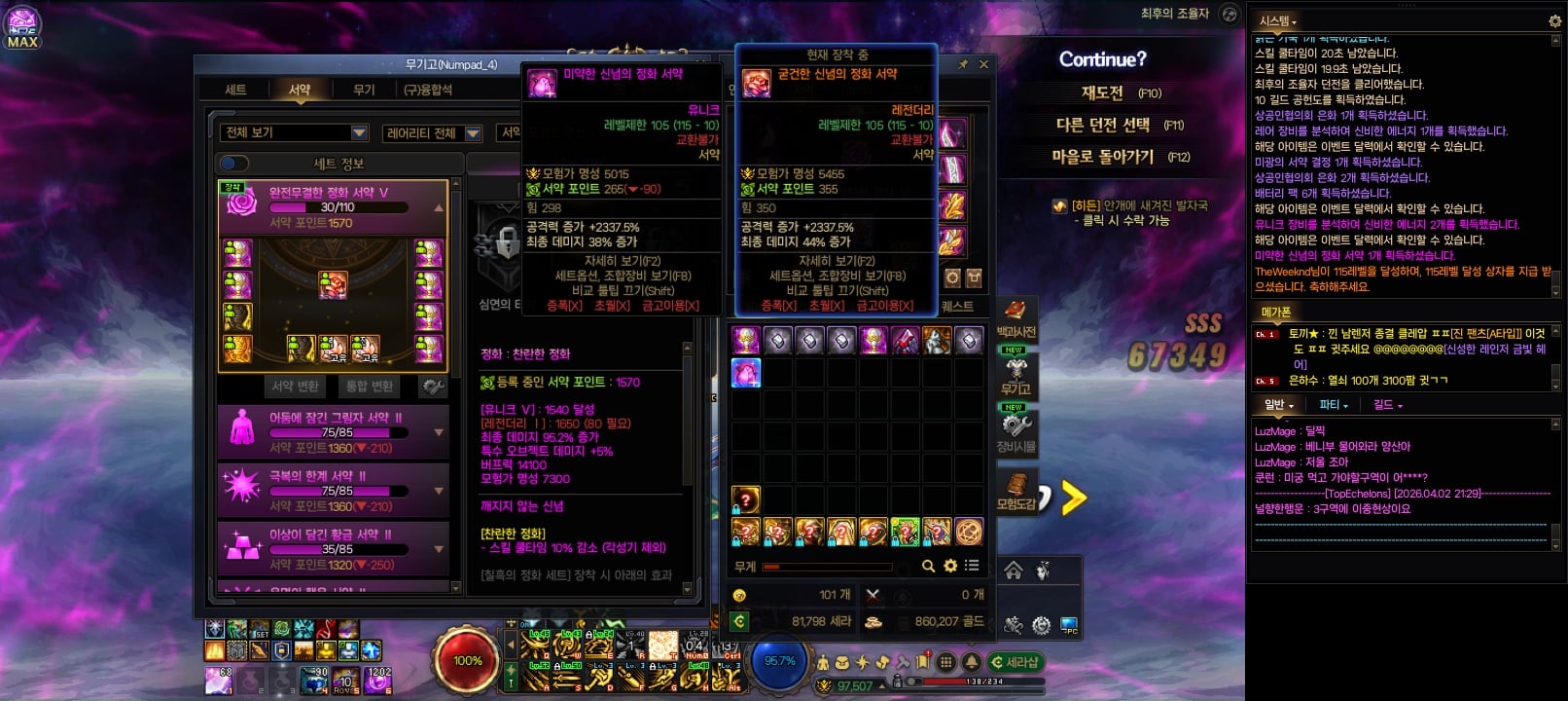 공지 [이벤트] 천해천 공략 이벤트 기간 연장 안내 던전앤파이터 2026.03.26 6,597 4 공지 던파로ON : 천해천 발표 요약 던전앤파이터 2026.03.07 22,329 15 공지 [상시이벤트] 3월 묻고답하기 이벤트 안내 (2월 답변왕 발표) 던전앤파이터 2026.03.12 6,474 0 공지 장비 / 플레이 / 뉴비 정보 모음 (224) 던전앤파이터 2025.04.24 999,999+ 121 공지 던전 공략 모음 (천해천 상급 던전) (188) 던전앤파이터 2025.11.26 999,999+ 145 공지 전직 별 가이드 모음 (26/03/03 갱신) (769) 던전앤파이터 2026.02.27 999,999+ 402 토론 [공통] 중천장비 초월 완화좀여 합격찹쌀떡 23:08 4 0 질문 [여넨마스터] 여넨 레거시 무기 질문 (1) 메이지교주 23:01 25 0 수다 [공통] 던슬렁온김에 내일은 천해천 24시간 던파!! (1) 뚱냥 22:54 53 0 질문 [공통] 히든아바타 질문 (4) DKT헤이 22:53 47 0 수다 [공통] ■하와왕■ 천해천 우리가 남길 것은 기억이 아닌 기록이다 / 기록 남길 길드원 모집중 / 지금바로문의 ! (8) 천상시 22:52 2,826 1 수다 [공통] [오픈카톡방] 뉴비&던붕이 필수 오픈톡방! 초쿠의 던전앤파이터 수다&정보방 정상 영업 중! (42) 초코쿠키핌 22:40 99,245 9 질문 [블레이드] 블레이드 13강 (1) 뭉은 22:37 88 0 수다 [패러메딕] 던린이 스킬 관련 세팅 했는데 헛수고였음.. (1) 메딕알파 22:27 100 1 질문 [남런처] 이게무슨소리인가요?? 천수의레인저 22:25 155 2 수다 [공통] 어둠의 시챌 게임!! 임시dnf909167831 22:12 102 0 수다 [공통] 남거너 아바타좀 제발 팔아줍메 히로닐스 22:12 152 0 수다 [공통] 메가폰 만담 (1) 헤카테 22:11 139 0 수다 [소울브링어] 피로도 한캐릭 400 때려부어도 칭갓수라 22:08 139 0 팁 [배틀메이지] 던담으로 딜 계산해보고 있는데 배메 정배는 앱제+칠흑+황금같네요 해둥이 22:02 135 0 질문 [공통] 달잠호 명성 미달 (2) 소크라테스♥ 21:54 161 0 팁 [공통] [필수] 태초결정 + 에픽문패 수급 팁 용가리탕 21:51 206 0 수다 [공통] 리스트에 적힌 아바타 삽니다 용비불량 21:50 112 0 수다 [공통] = ㅅ = (5) 수녀님 21:44 174 0 수다 [헌터] 나만 운 없나요??? (5) 홍시리 21:41 201 0 질문 [배틀메이지] 뉴비 이번에 받는 태초악세들 태초서약에 따라서 받으면 되나요?? (2) 느뺌 21:39 212 0