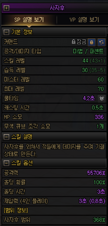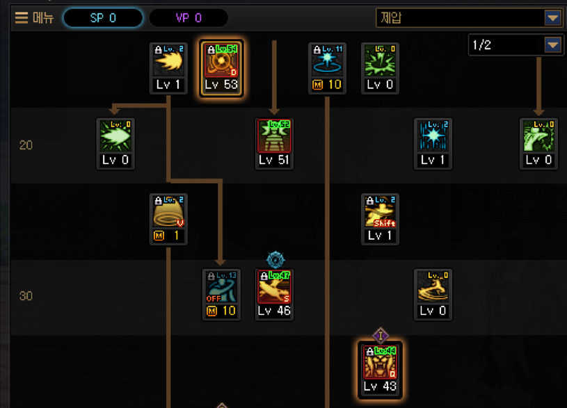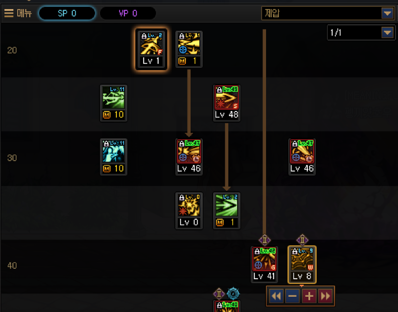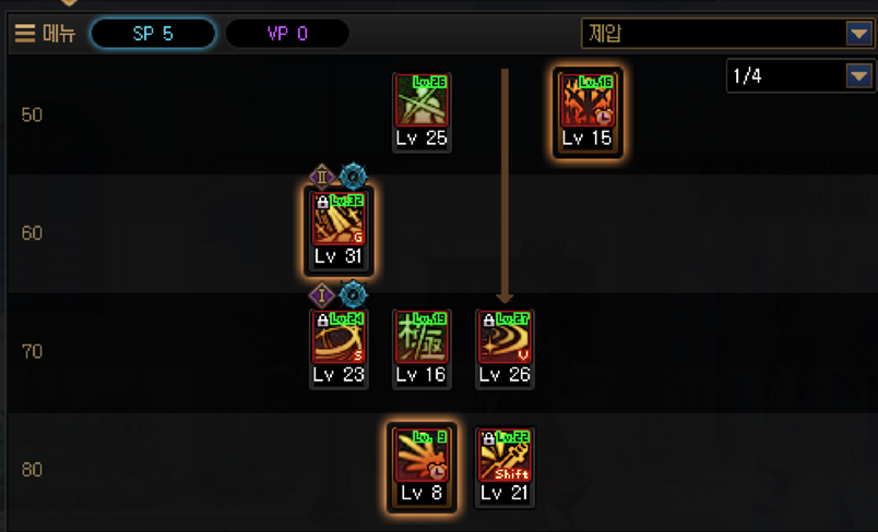 검신의 경우도 뜬금없이 유성락에 제압을 붙여놨는데, 이게 VP2 찍고 주력기로 쓸 수 있는 스킬이에요.