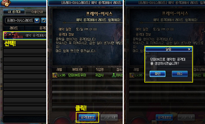 예약 공격대는 던파ON에서 공격대를 미리 생성하거나 참여하고