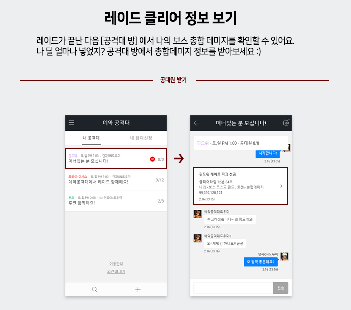 예약 공격대로 공대원/공대 찾는 시간을 줄일 수 있다는 것이 큰 장점인데요.