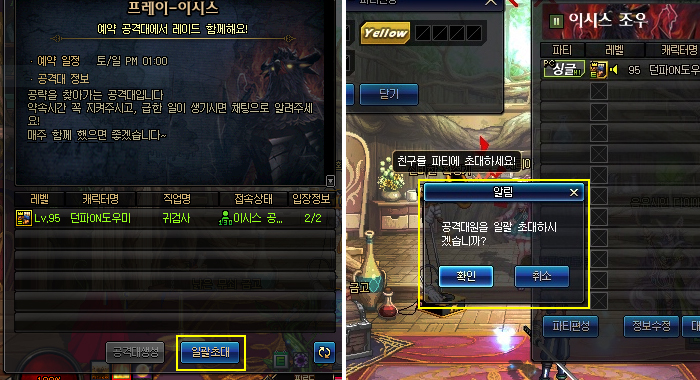그럼 바로 [일괄 초대] 기능을 사용할 수 있고 레이드도 빨리 할 수 있을테니까요!