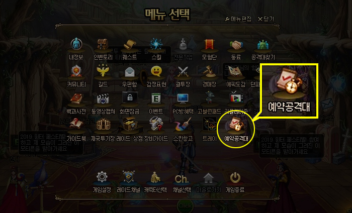 [예약공격대 메뉴로 들어가세요!]