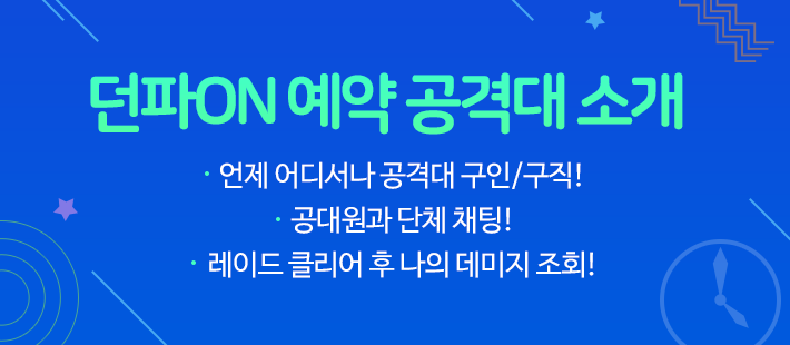 * 던파ON 예약 공격대 기능을 이용해 공격대를 맺고, 레이드를 클리어 해 보세요. (자동 응모)