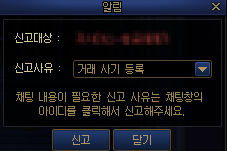 캐릭터 이름 클릭 → 신고하기 → 거래 사기 등록
