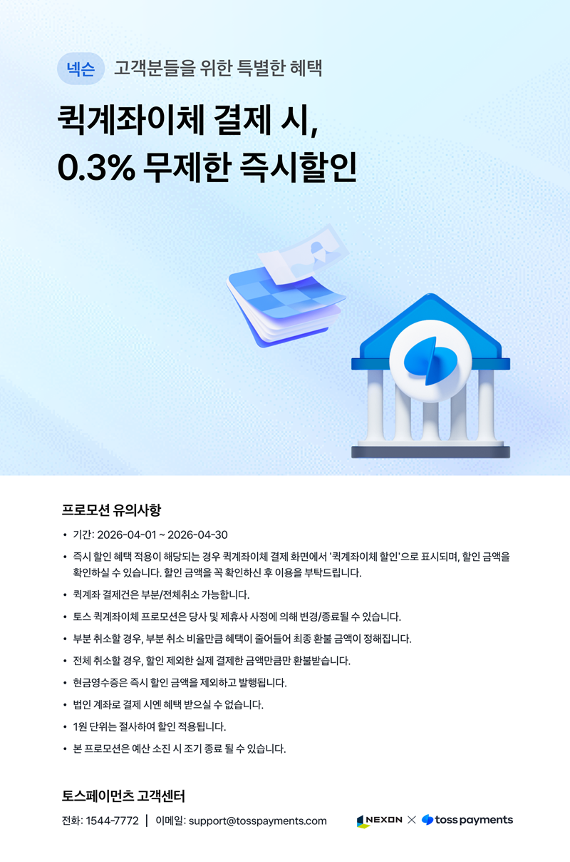 퀵계좌이체로 결제 시 0.3% 즉시 할인
