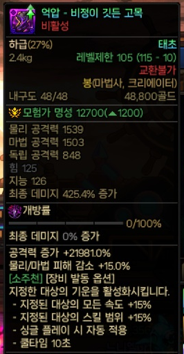 [아이템] 억압 - 비정이 깃든 고목 장비의 장비 옵션이 파티원에게 시전 불가인 버그