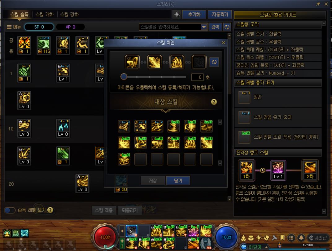 스위프트마스터 캐릭터로 스킬체인 사용중 발견한 문제로