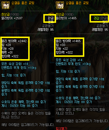 재질 변경 시 방어구의 강화,증폭,마법부여 상태는 유지됩니다.
