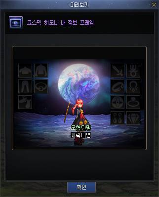- 사용 시 직업과 타입을 선택한 후 코스믹 어드벤처 아바타(교환가능) 9부위를 획득할 수 있습니다.