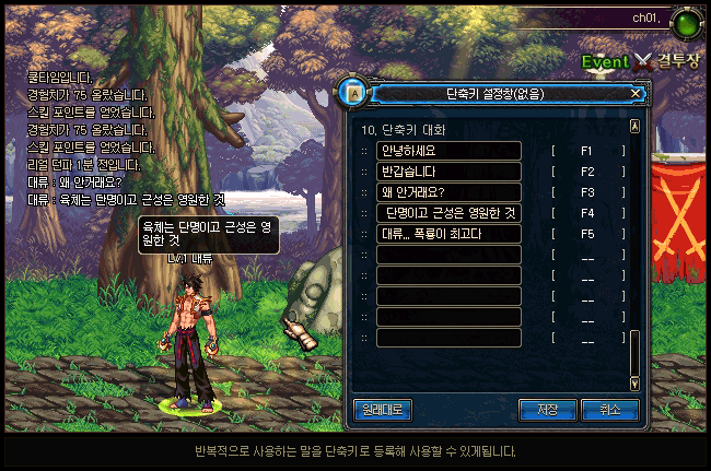 * 단축키 설정창에서 채팅 문구와 단축키를 설정할 수 있습니다.
