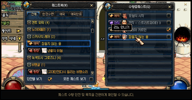 * 수행 중인 퀘스트 메뉴에서 가야하는 던전의 정보를 툴팁으로 확인할 수 있게됩니다.