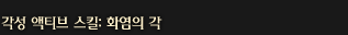 지옥의 화염을 불러와 자신의 발을 감싼다. 마셜아츠 기술에 대한 쿨타임과 후 딜레이가 감소하고,