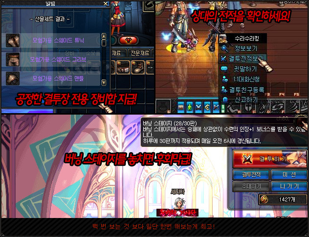 * 공정한 결투장 채널 최초 입장 시 결투등급에 따라 공정한 결투장 전용 장비함이 지급됩니다.